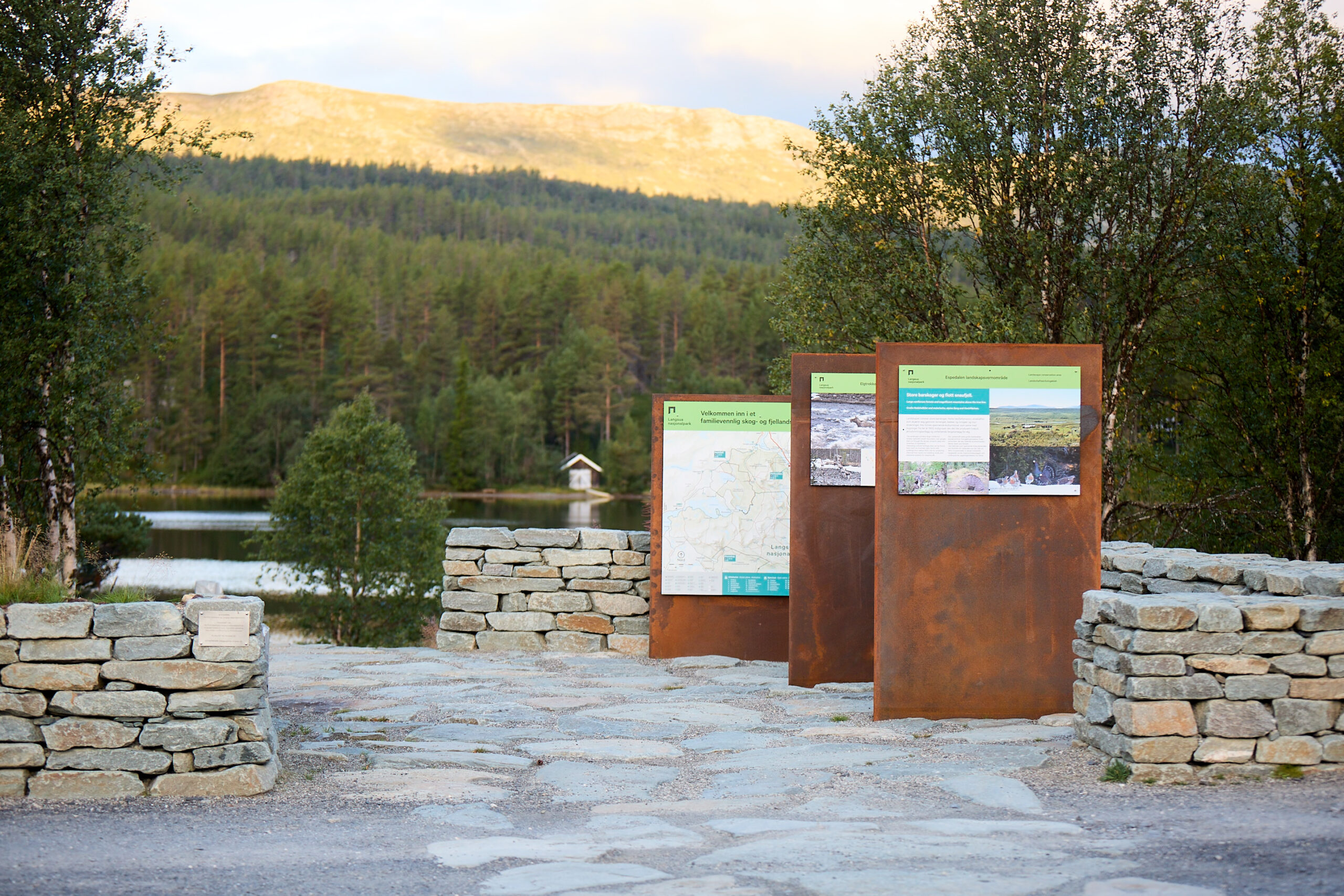 Startpunktet ved Verksodden i Espedalen markerer inngangen til Langsua Nasjonalpark, og er utformet for å gi besøkende en informativ og stemningsfull opplevelse. Med respekt for både natur og kulturminner kombinerer prosjektet funksjonelle løsninger med estetisk tilpasning til landskapet.